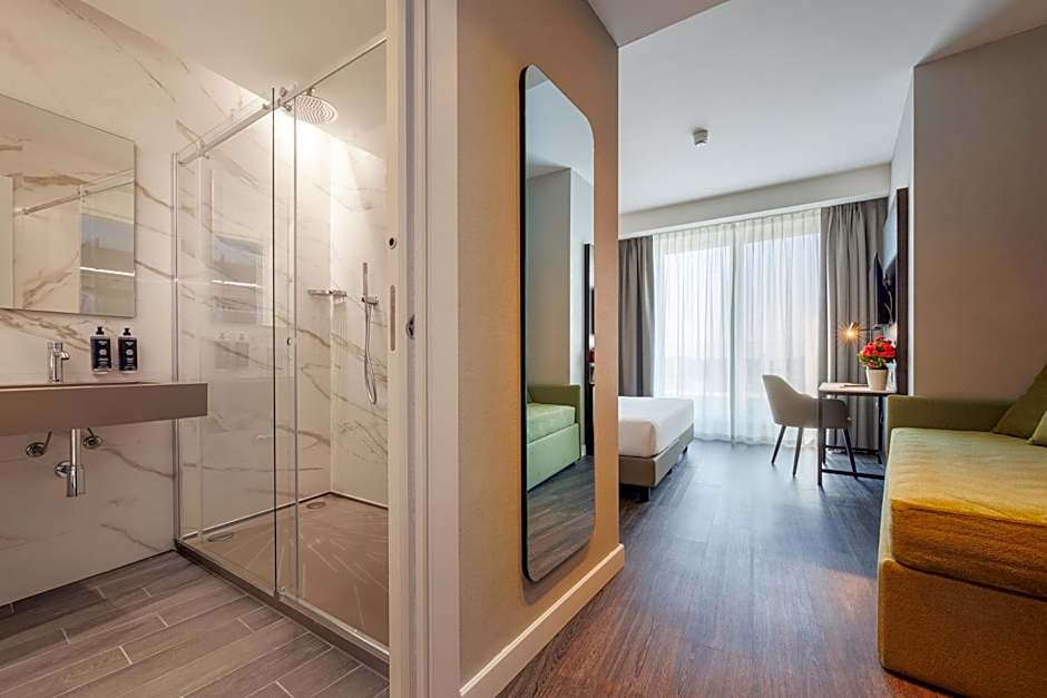 Offering free toiletries, this quadruple room includes a private bathroom with a bidet and a hairdryer. The quadruple room offers air conditioning, a mini-bar, a tea and coffee maker, a safe deposit box and a flat-screen TV with satellite channels. The unit offers 2 beds.